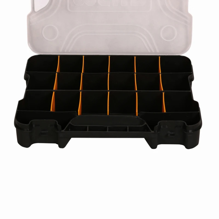 نکتهای که برای من خیلی مهم بود، امکان جابهجایی دیوارههای داخلیه. هر محفظه رو متناسب با اندازه قطعههایی مثل پیچ، مهره، سیم یا حتی قطعات الکترونیکی تنظیم کردم و همهچیز دقیقاً سر جاشه.