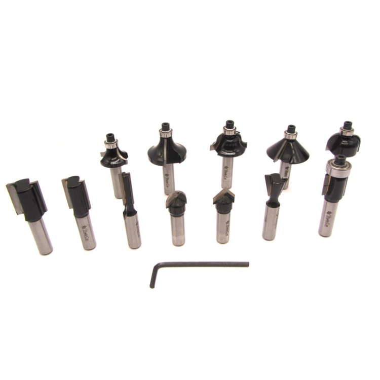 شیارزن مستقیم (۳ سایز)، شیار V-Groove 90°، دالتايل (Dovetail)، اریب با بلبرینگ (Chamfer), پروفیل Roman Ogee، گردهزن با بلبرینگ (Round Over دو سایز)، پوشان (Flush Trim)، کاسهای (Core Box)، پروفیل داخلی (Cove)