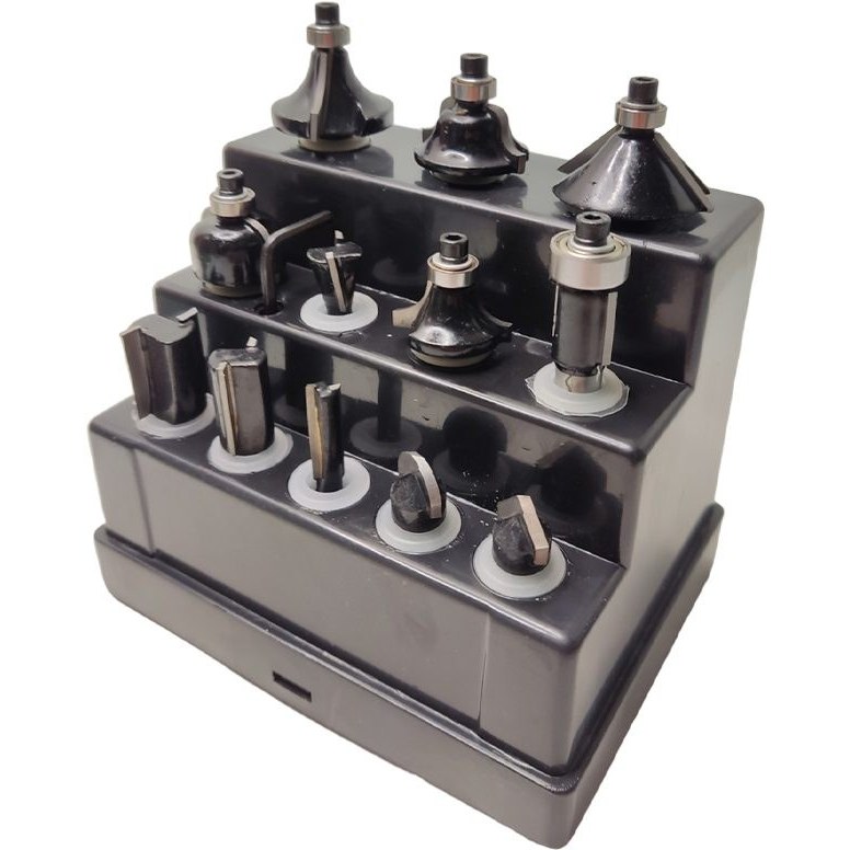 شیارزن مستقیم (۳ سایز)، شیار V-Groove 90°، دالتايل (Dovetail)، اریب با بلبرینگ (Chamfer), پروفیل Roman Ogee، گردهزن با بلبرینگ (Round Over دو سایز)، پوشان (Flush Trim)، کاسهای (Core Box)، پروفیل داخلی (Cove)