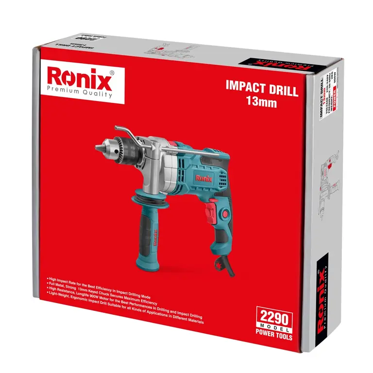 🛠️ دریل چکشی رونیکس مدل 2290 – ۱۳ میلیمتر، ۹۰۰ وات، نیمتنه فلزی