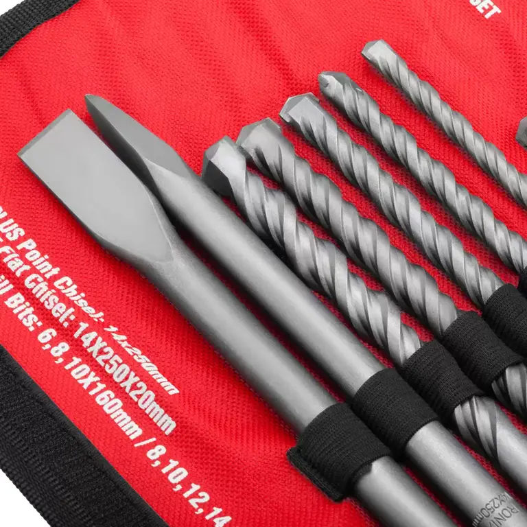 این مجموعه شامل ۸ مته در سایزهای مختلف و ۲ قلم (نوکتیز و تخت) بوده و در کیف مقاوم قابل حمل عرضه میشود تا حملونقل و نگهداری آن آسان باشد.