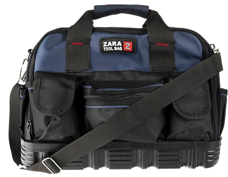 ابعاد استاندارد کیف ابزار زارا 121 Pro حدود ۴۵ × ۳۳ × ۲۵ سانتیمتر است؛ بنابراین فضای کافی برای ابزارهایی مانند آچار، پیچگوشتی، انبردست، متر، دریل و سایر تجهیزات فنی فراهم میکند. وجود دستههای مقاوم و بند دوشی قابلتنظیم، حمل این کیف را در محیطهای کارگاهی یا ساختمانی بسیار آسان میسازد.